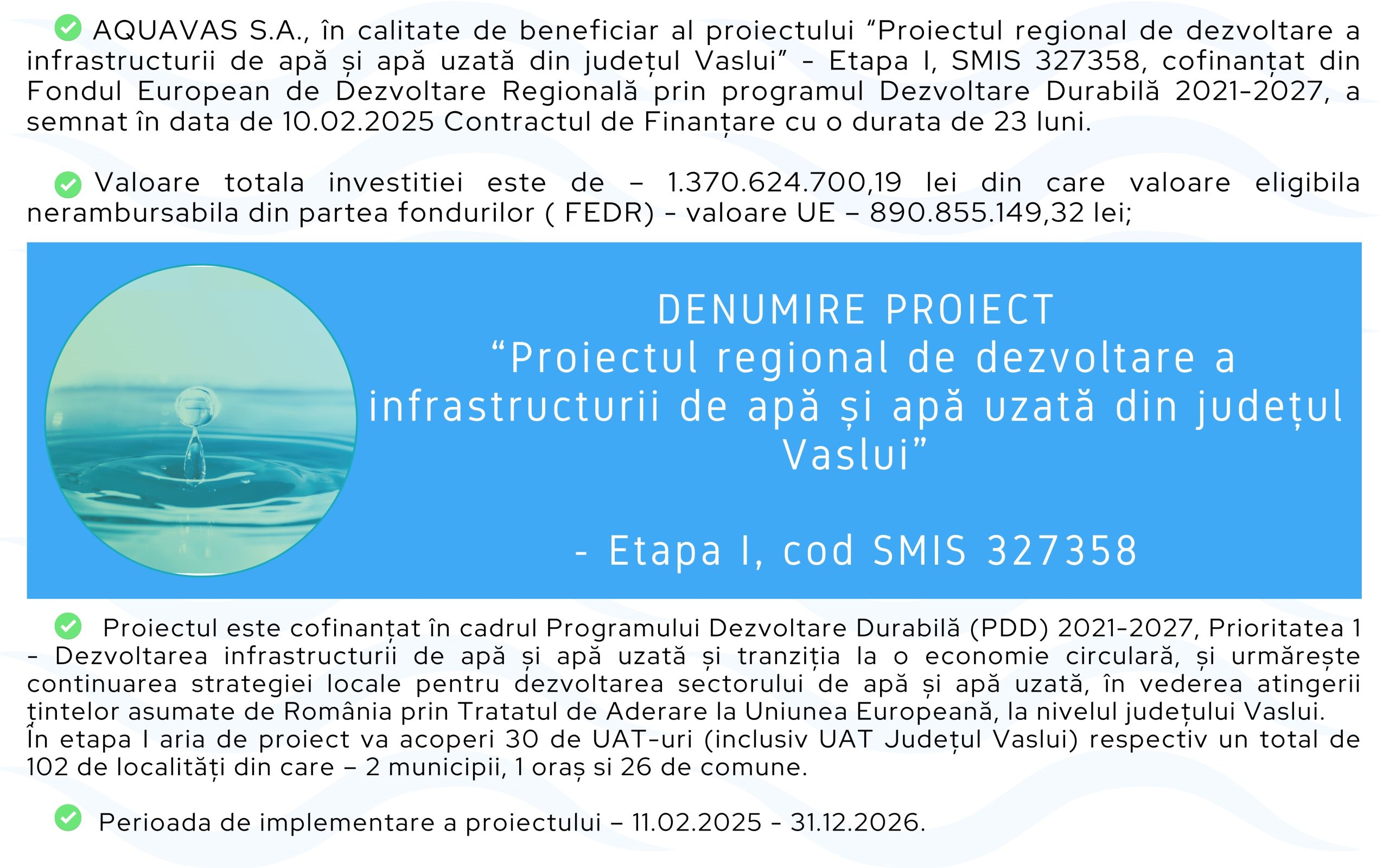 “Proiect regional de dezvoltare a infrastructurii de apă și apă uzată din județul Vaslui”